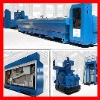 1. Main Technical Data 1.1. Inlet diameter: 8 mm 1.2. Outlet diameter: 1.30 4.5mm 1.3. Number of drawing pass: 13 1.4. Diameter of drawing capstans: 450mm 1.5. Max delivery speed: 25m/sec (Normal running speed at 18 22m/sec, 8 18m/sec. during annealing) 1.6. Annealing mode: by DC current of 5000A and voltage of 65V 1.7. Type of annealer: Horizontal layout 1.8. Speed ratio between drawing capstans: 1.279 1.15; for die 1 9, 1.279; for die 12 13, 1.05 1.26 1.9. Bobbin-change speed: 6 12m/sec. (automatic bobbin-change at preset length) 1.10. Size of take-up bobbin: PND500/PND630 1.11. Max. traverse width: 460mm 1.12. Main motor: Z4-315-42, 250kw, DC, 600 rpm 1.13. Motor for final capstan: Z4-200-21, 75kw, DC, 1500 rpm 1.14. Take-up motor (2 No.s): Z4-132-2, 22kw, 3000rpm 1.15. Total power: about 410kw 1.16. Consumption of compressed air: 6m3/h 0.5MPa 1.17. Volume of cooling oil tank: 20 m3 (to be prepared by user) 1.18. Overall dimension: 23750×5000×4510mm 1.19. Total weight: 43 tons 2.Composition and Specifications of Main Components 1 Cantilever two-position pay-off stand1 set 5Pointing & threading unit 1 set 2Main drawing machine 1 set. 6Pneumatic dual spooler 1 set 3Annealer 1 set. 7Electrical control system 1 set 4Accumulator & tensioner 1 set 8Steam generator 1 set 2.1. Copper Rod Breakdown Machine(straight row and rapid change of dies) 2.1.1 Die size: ø42×32mm (National standard) 2.1.2. Type of finish die: Rotary 2.1.3. Die threading inching: 3 pedal switches with anti-reverse device 2.1.4. Gearbox cooling and lubrication: Gear oil pump: GBZ-50, 3kw, 50L/min, 2.5MPa Heat exchanger: tubular cooler GLC4-13 13m2, tubular cooler (horizontal layout) 2.1.5. Cooling and lubrication for wire drawing: Emulsion pump: ISL80-65-160, 7.5kw, 11.5 L/sec. Heat exchanger: GLL5-25/0.63L, 25m2 tubular cooler Filter: SLQ-65, duplex barrels and net type, 0.4 0.6 MPa Water consumption: 1000 L/hr. Volume: 20 m3 (To be prepared by user) 2.2. Continuous Annealer 1) Input diameter:ø1.30 ø4.5mm 2) Max. linear annealing speed: 18m/sec (variable as per different wire size) 3) Annealing voltage/current:45 65V/5000A 4) Capacity of transformer:450KVA, DC 5) Elongation after annealing:33 35% (ø2.57) 6) Annealing inching switch:2 No.s (pedal) 7) Diameter of contact pulley: ø420 8) Compressed air consumption:About 350L/min, pressure: 0.5 0.6MPa 9) Steam consumption:About 40L/min, pressure ≥0.05 0.1MPa 10) Type of steam generator: 9DZL, power: 9kw pressure0.2Mpa, volume of steam generated: 11kg/h 11) Cooling emulsion:0.5 1% Saponified fluid, volume: 650L/min Pressure: 0.2 0.8Mpa, capacity of cooling tank: 1900L 12) Cooling pump:ISG, Q=12.5L/sec, 2900rpm, 7.5kw 13) Cooler:GLL-24/0.63, 24m2 tubular cooler 14) Cooling air blower:Centrifugal 1 No. Type 9-19, No. 4, 90° left 2.3. Wire tension control 1 Length of accumulated wire5.9m3Wire breakage detectedAutomatic stop upon wire breakage2Tension control250N, regulated by air pressure from cylinder4Pedal inching switch1 No. 2.4. Pneumatic Automatic Dual Spooler 2.4.1. Max. diameter of finish wire:4.5 mm 2.4.2. Min. diameter of finish wire:1.30 mm 2.4.3. Max. take-up speed:25mm/s (8 20 m/s in annealing) 2.4.4. Speed of bobbin-change:6 12m/s 2.4.5. Max. width of traversing:460mm 2.4.6. Max. pitch of traversing:6 mm 2.4.7. Size of take-up bobbin:PND500 or PND630 2.4.8. Power of motor for take-up:22kW×2(DC) 2.4.9. Mode of transmission for traverse: AC variable frequency plus screw 2.5. Pointing and Threading Unit 1 Diameter and rotation speed of pointing roller110mm, 16 rpm4Motor power 7.5kW, AC 2Range of rolling φ1.3 12mm 3Diameter of drum 430 2.6. Electric Control Panel 1 Control panel for drawing machine1 Set4 Power control panel for Annealer1 set2Control panel for take-up 1 set3Control panel for annealer1 set5Control desk 1 set 3. Mechanical and Electrical Integration 3.1. DC motor of Z4 series from well-established Chinese manufacturers; 3.2. Bearing for main transmission from Timken (), a well-known American manufacturer; 3.3. Main oil seals from Chinese high quality product;